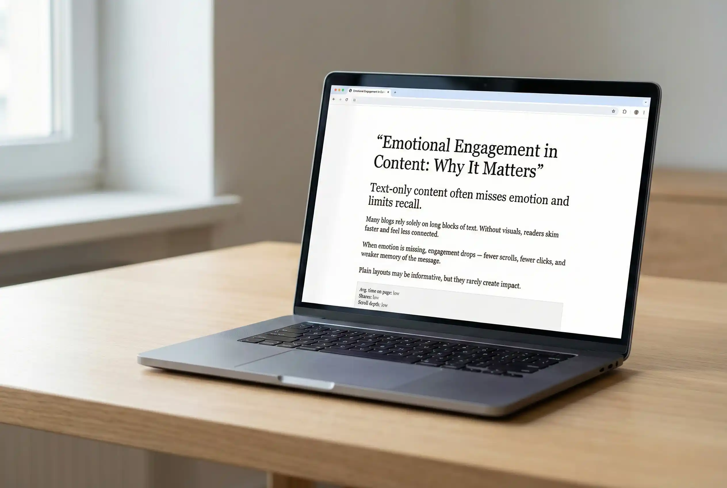 Articles, blogs, and campaigns rely solely on text, miss emotional depth, and limit performance without enhanced content engagement design.