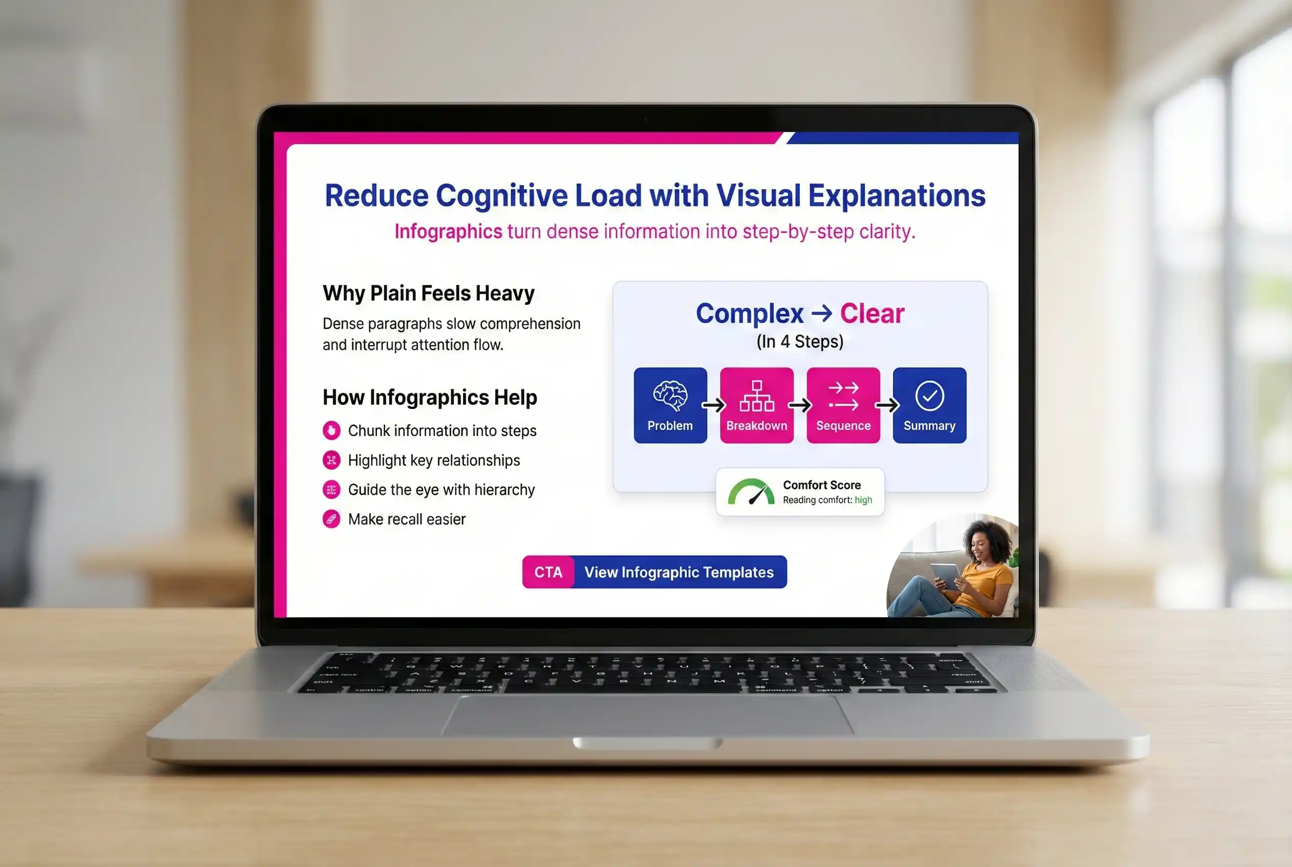 Complex topics feel overwhelming, reduce comprehension speed, and discourage deep attention flow.