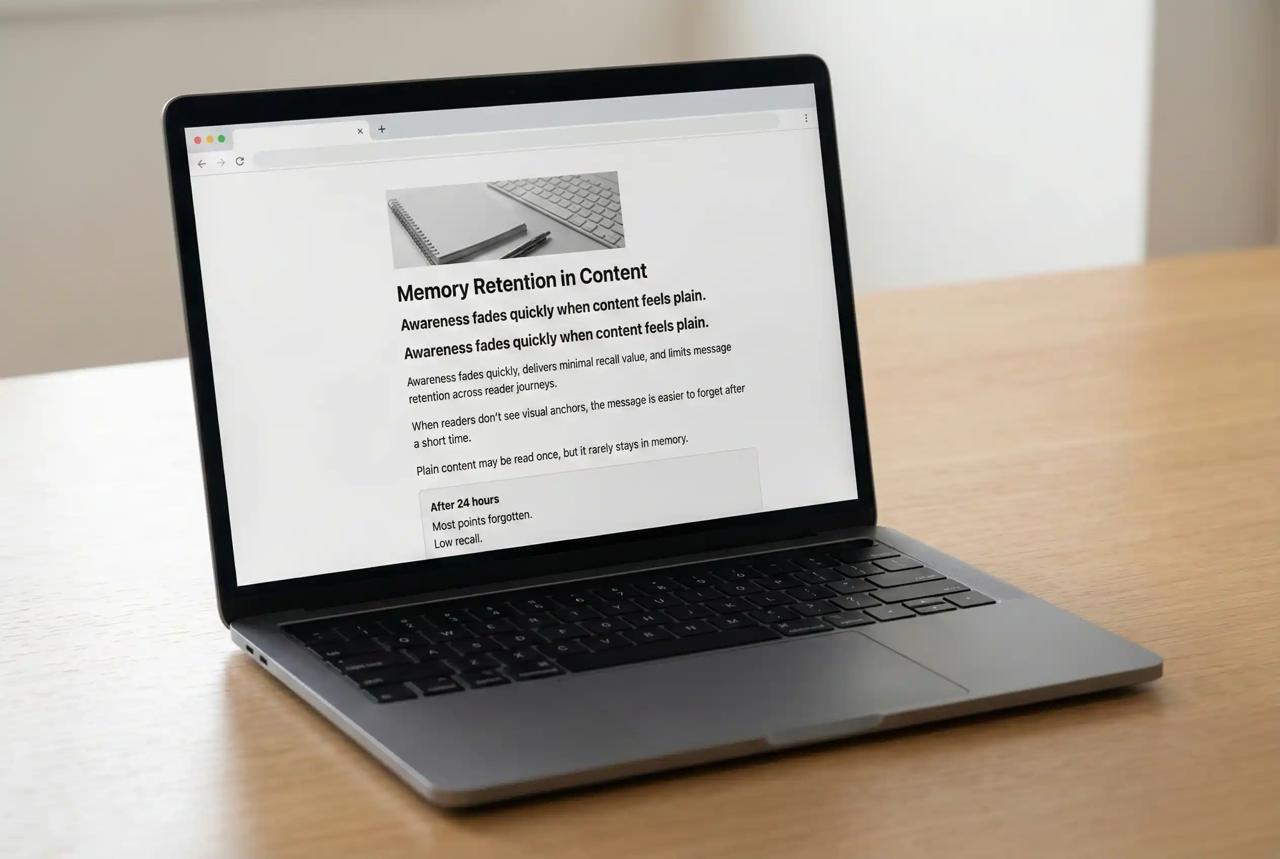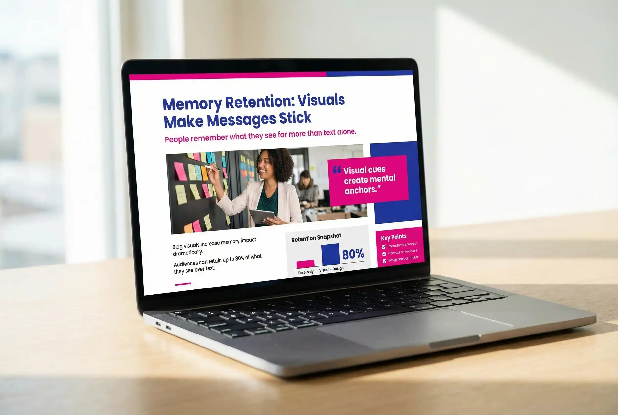 Blog visuals increase memory impact dramatically, as audiences retain up to 80% of what they see over text.