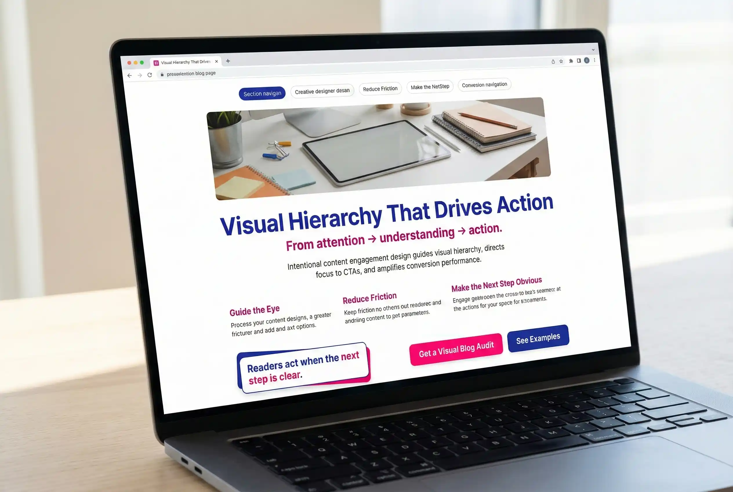 Intentional content engagement design guides visual hierarchy, directs focus to CTAs, and amplifies conversion performance.